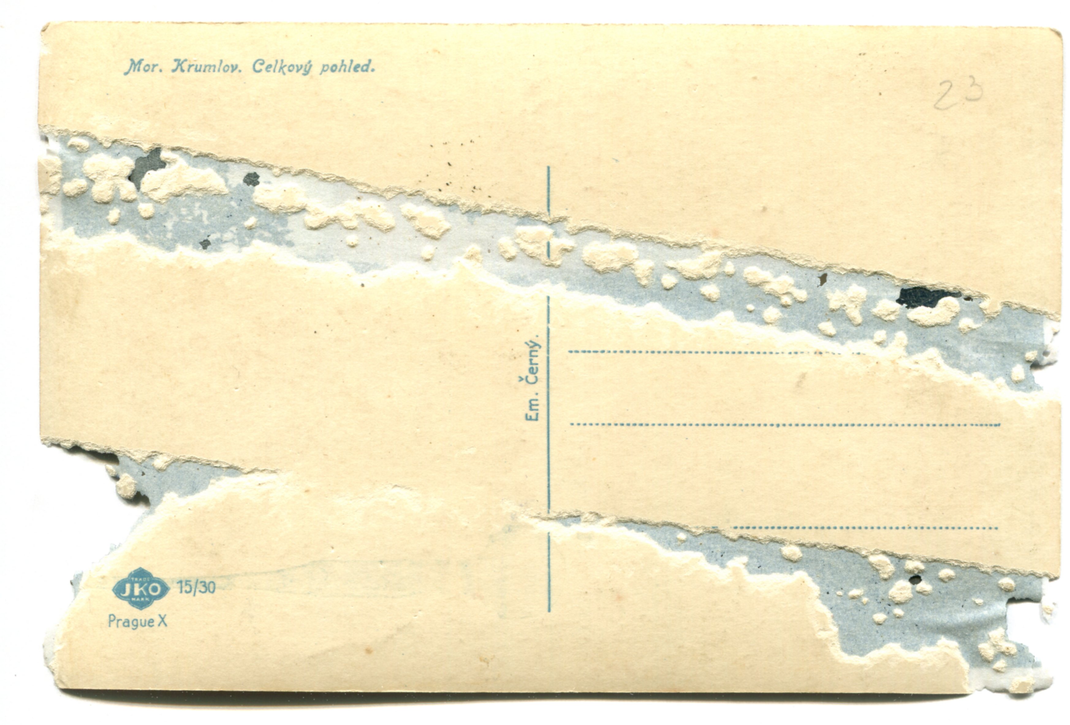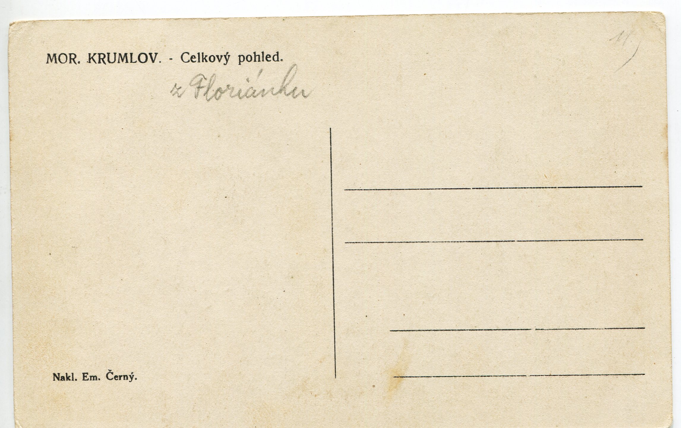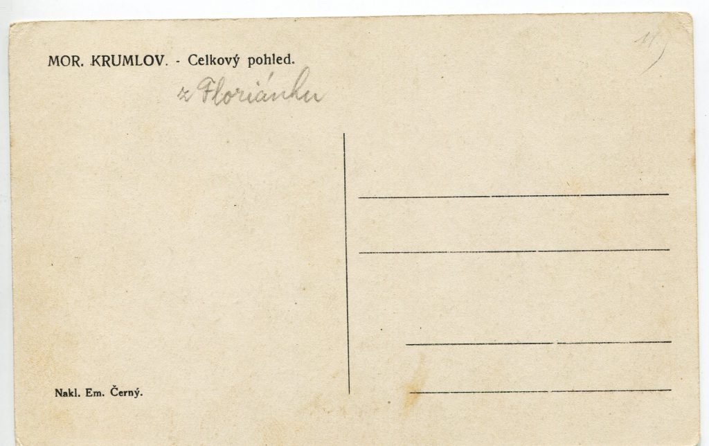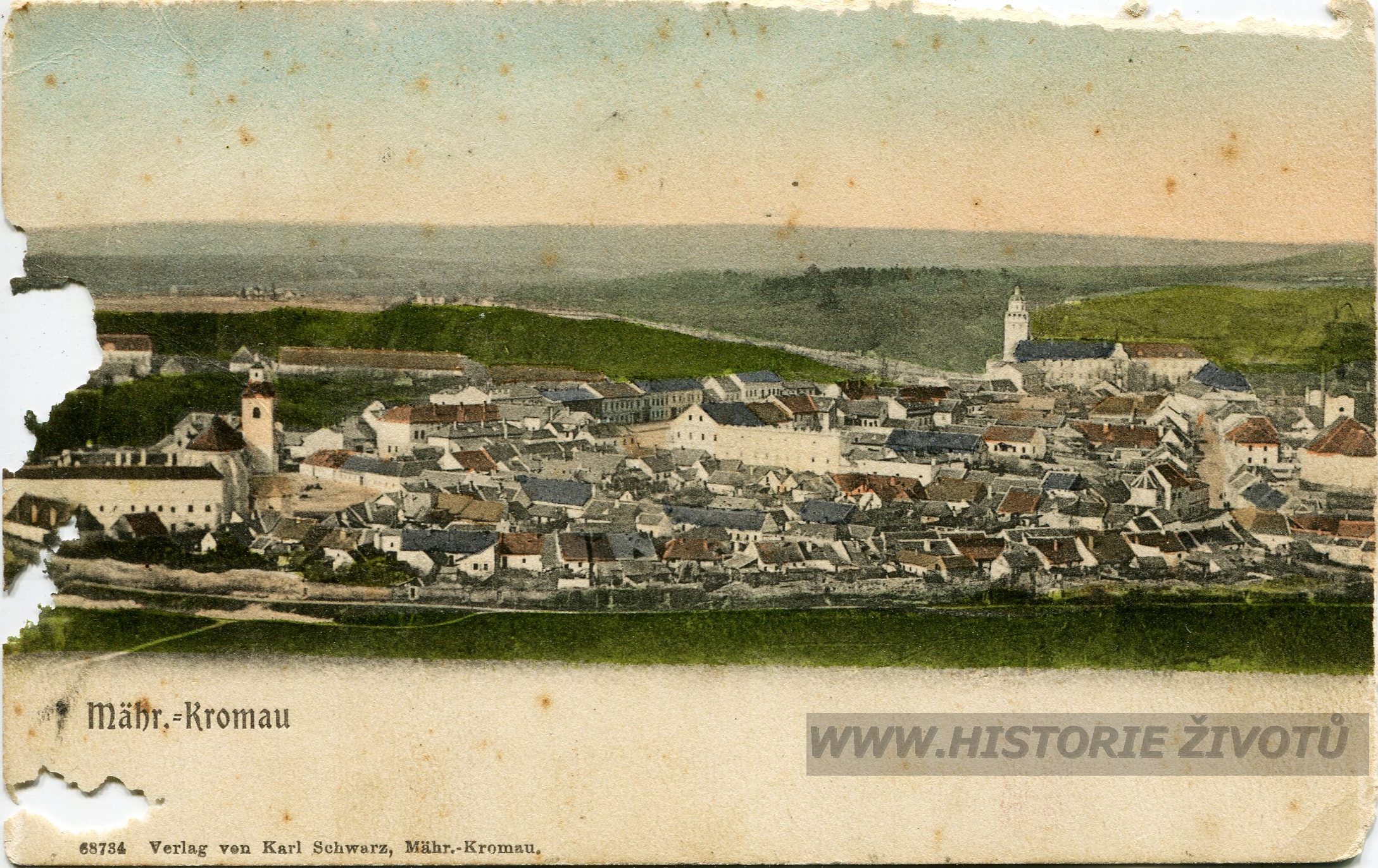 Přední strana : Nápis: „Mähr.=Kromau“ 68734 Verlag von Karl Schwarz, Mähr.-Kromau