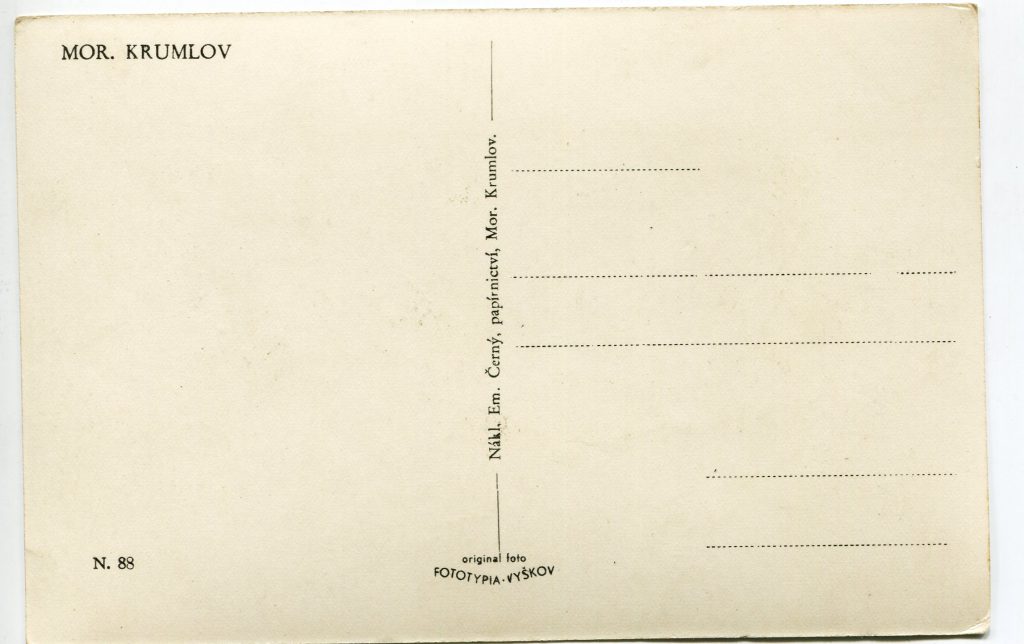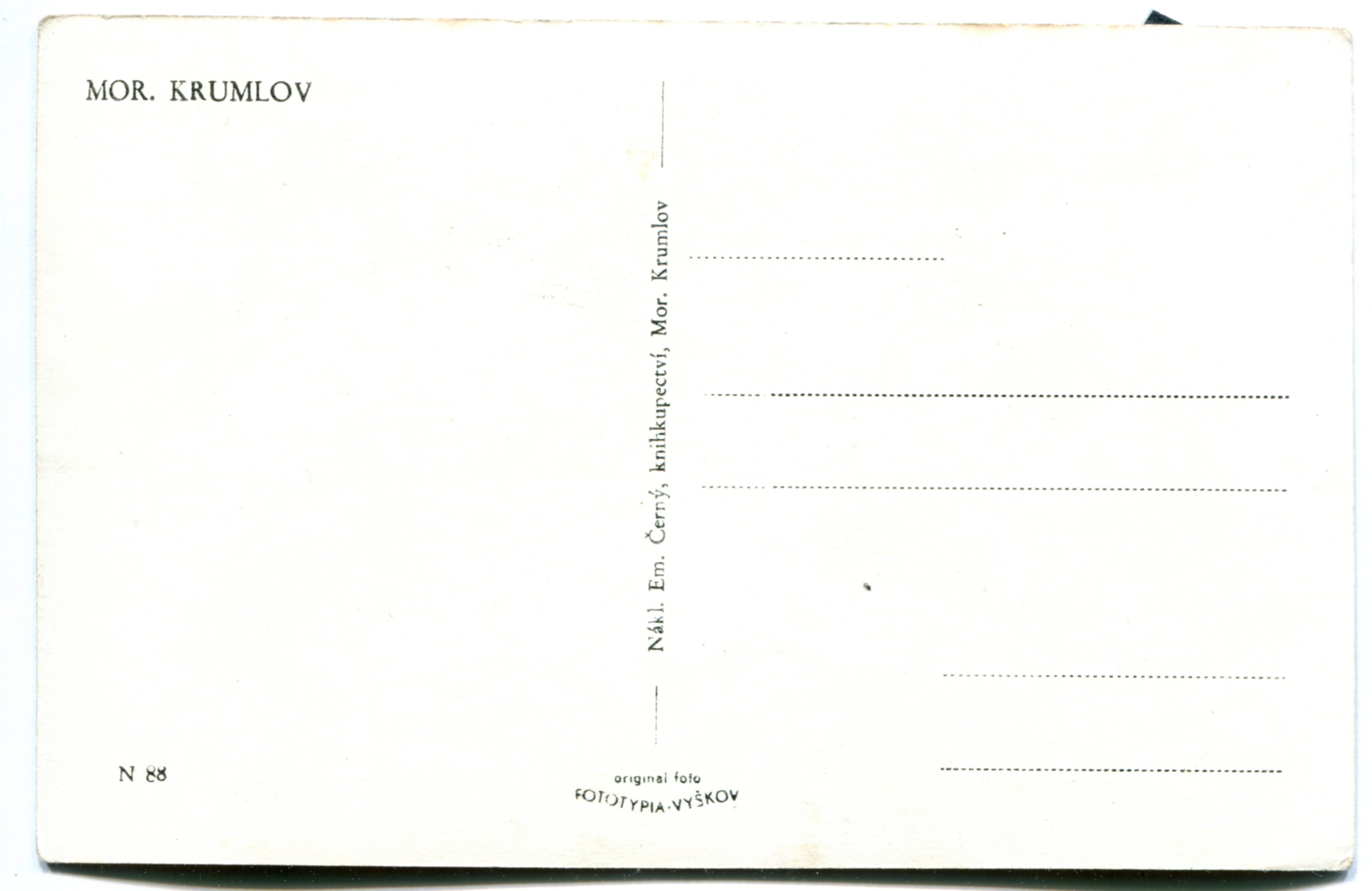 Zadní strana (Obr.č.105): Nákl. Em. Černý, knihkupectví, Mor. Krumlov original foto Fototypia Vyškov N 88