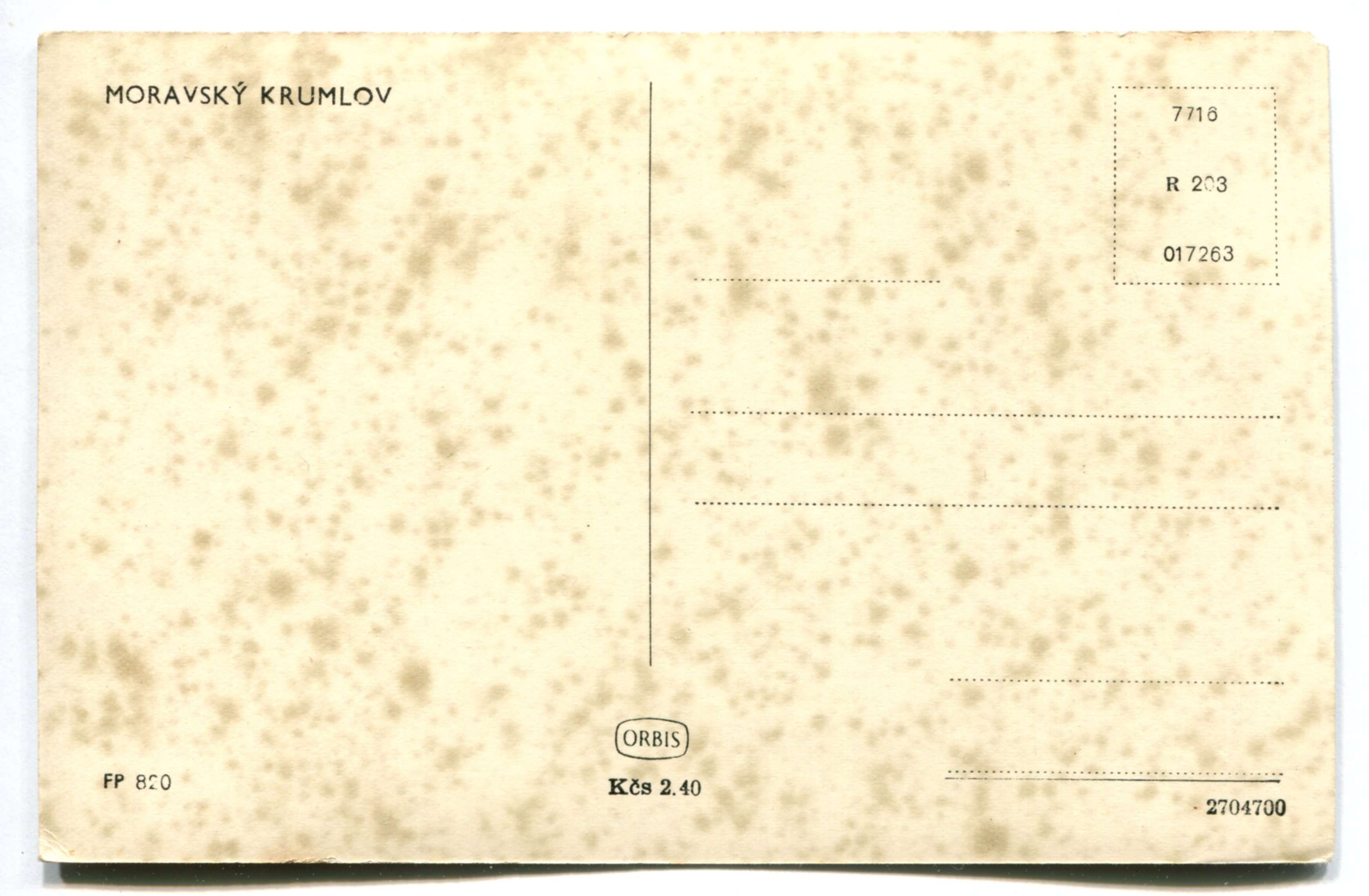 Popis: Fotografie i většina textu na zadní straně jsou na pohlednicích Obr.č.102 a Obr.č.104 stejné, vydání je jiné. Obr.č.106 – jiná zvětšenina z téže fotografie, zcela jiné vydání – Orbis využíval starší fotografie znovu v období 1949-1953
