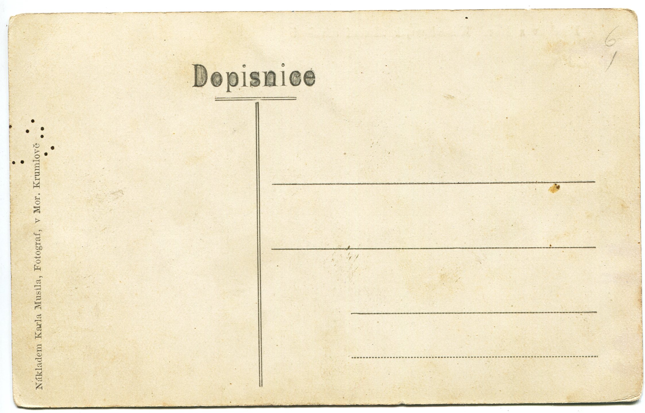 Zadní strana (Obr.č.9): Nákladem Karla Musila, Fotograf, v Mor. Krumlově