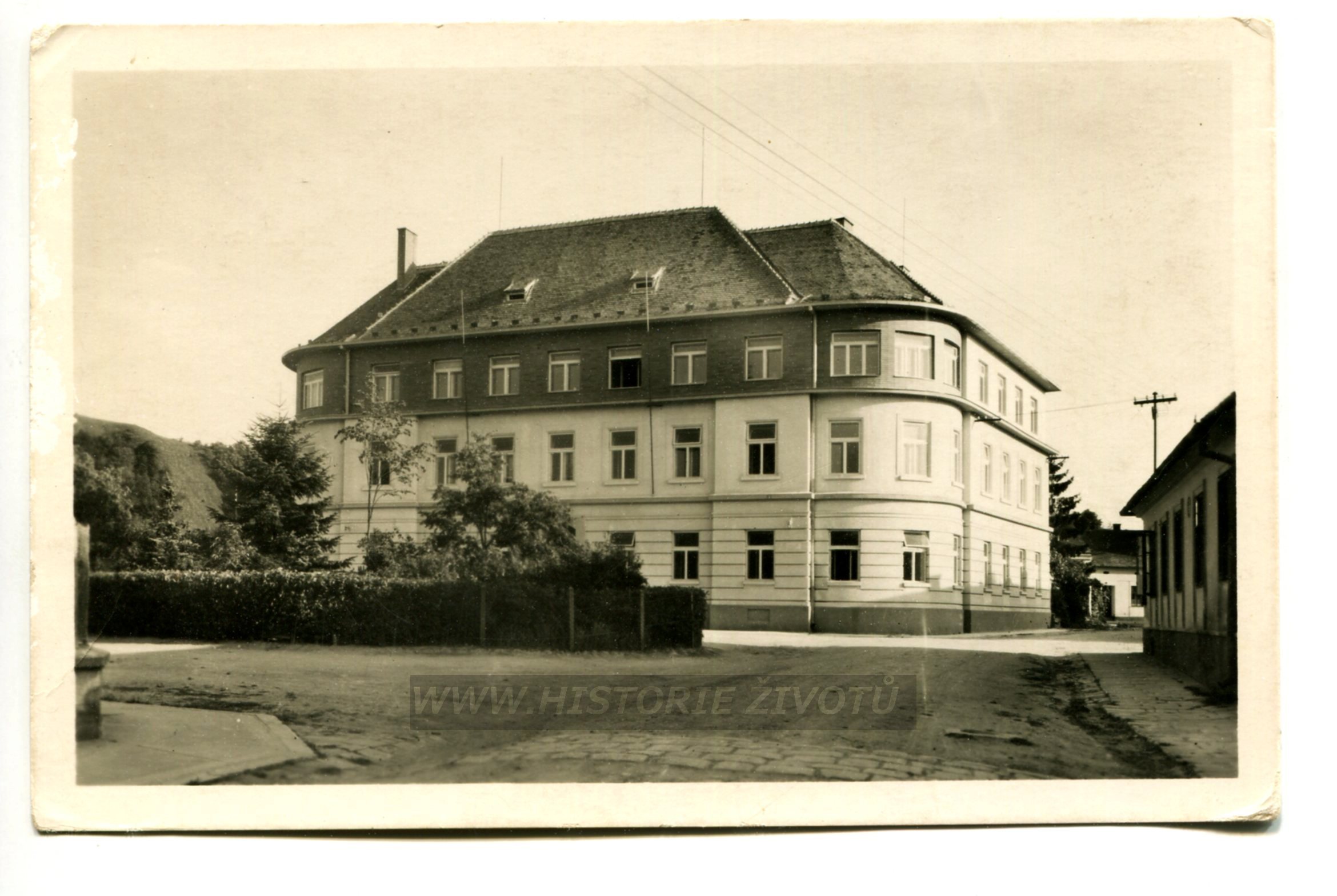 Zdůvodnění: Je v ní umístěna Národní škola – 1951; pohlednice vydána po roce 1953 (cena 0,50 – po měnové reformě 1.6.1953)