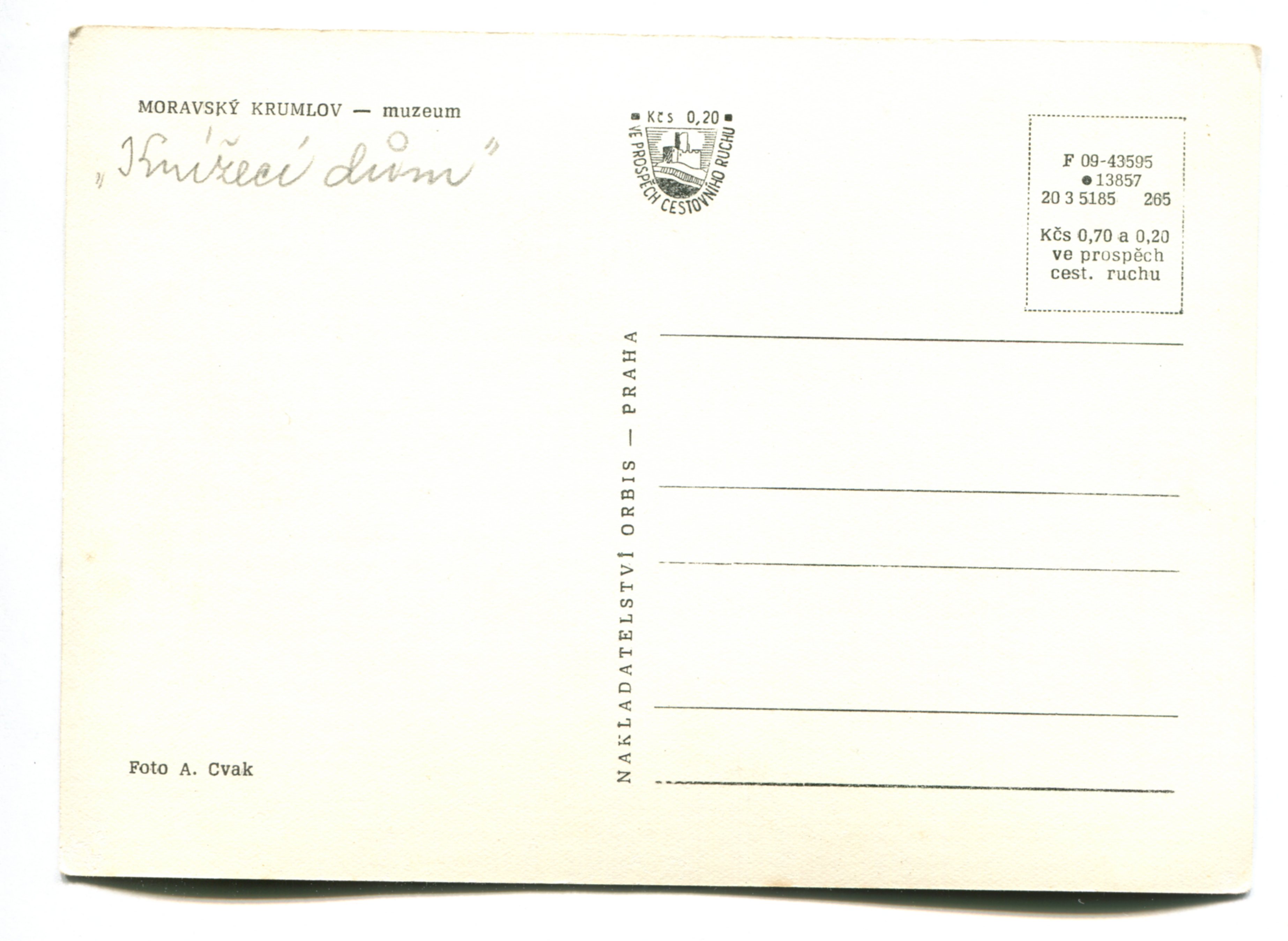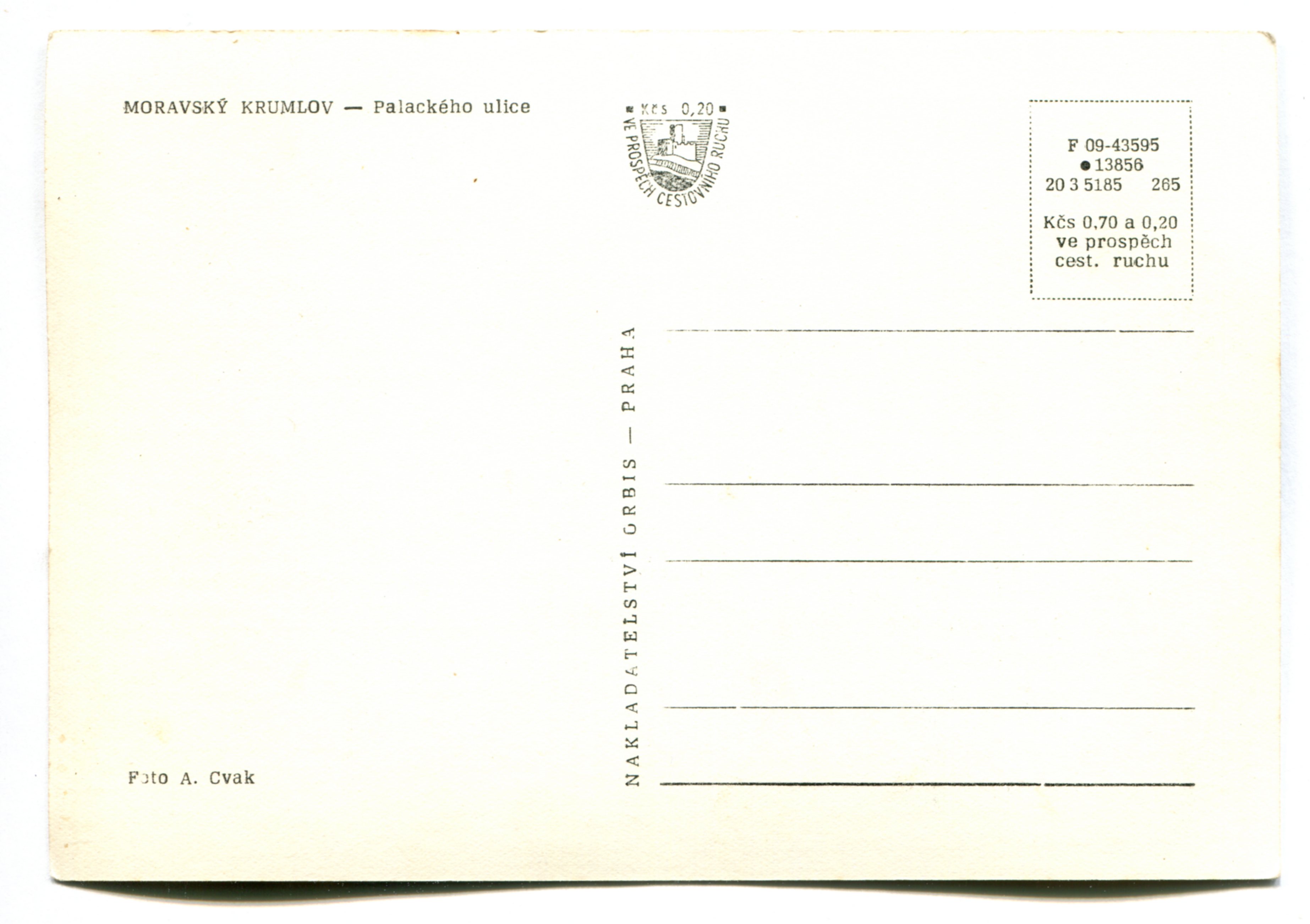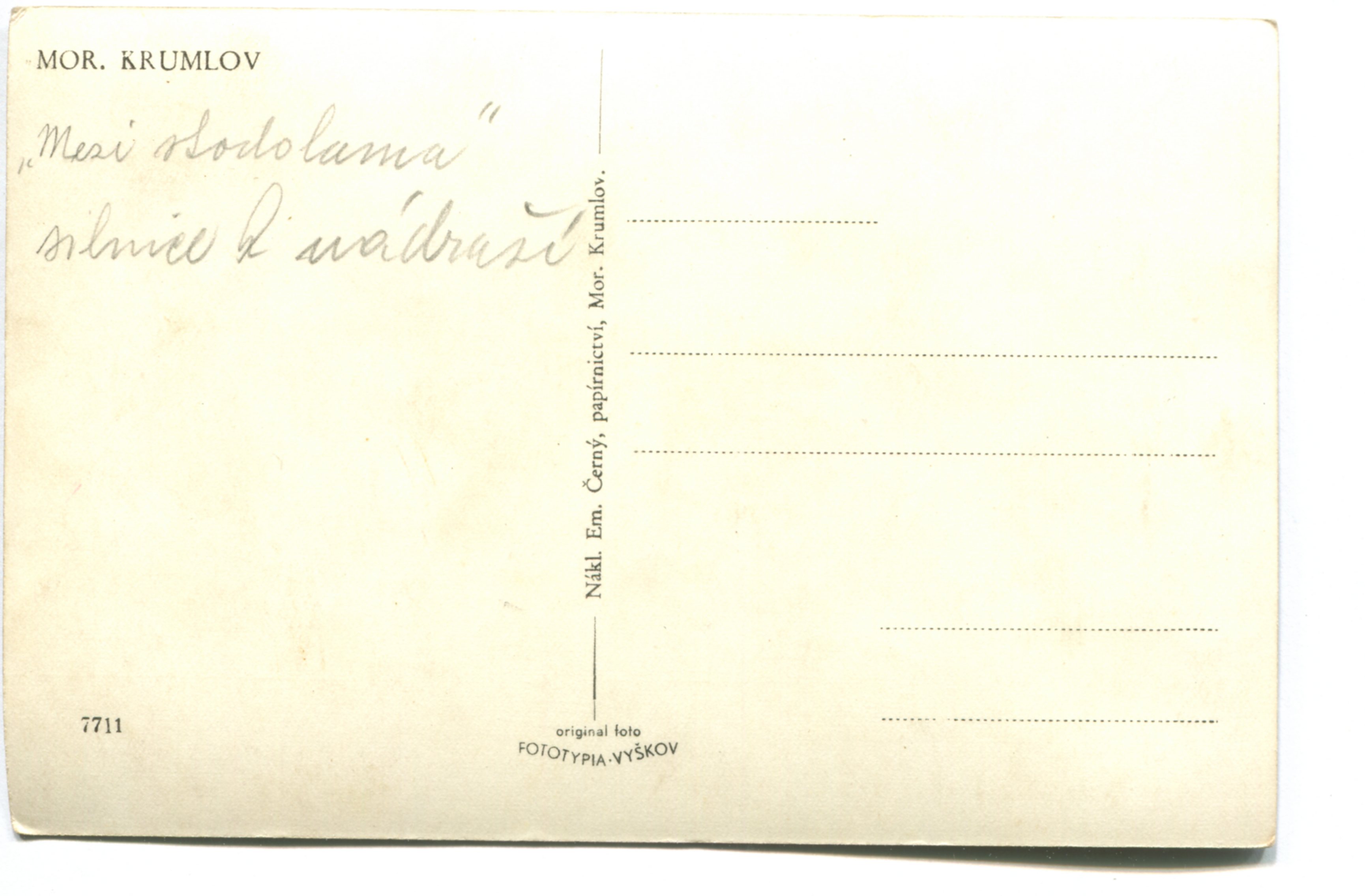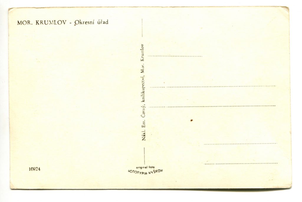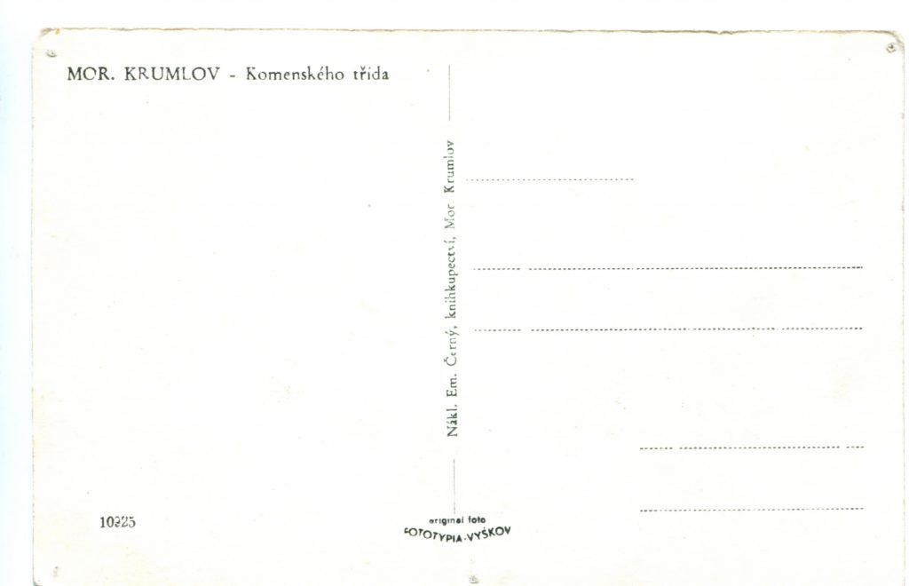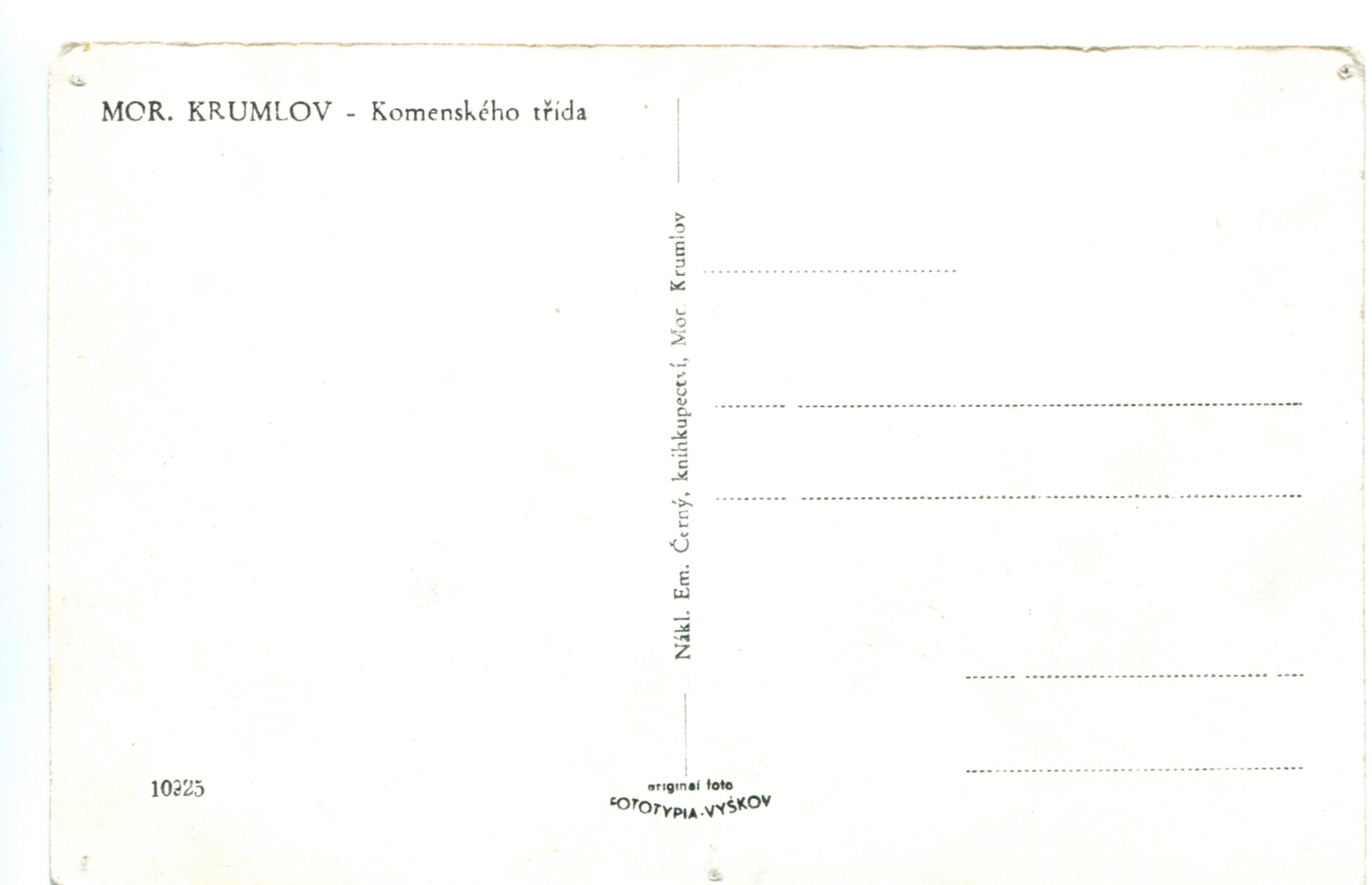 Zadní strana (Obr.č.43): Nákl. Em. Černý, papírnictví, Mor. Krumlov Originalfoto Fototypia Vyškov 7711