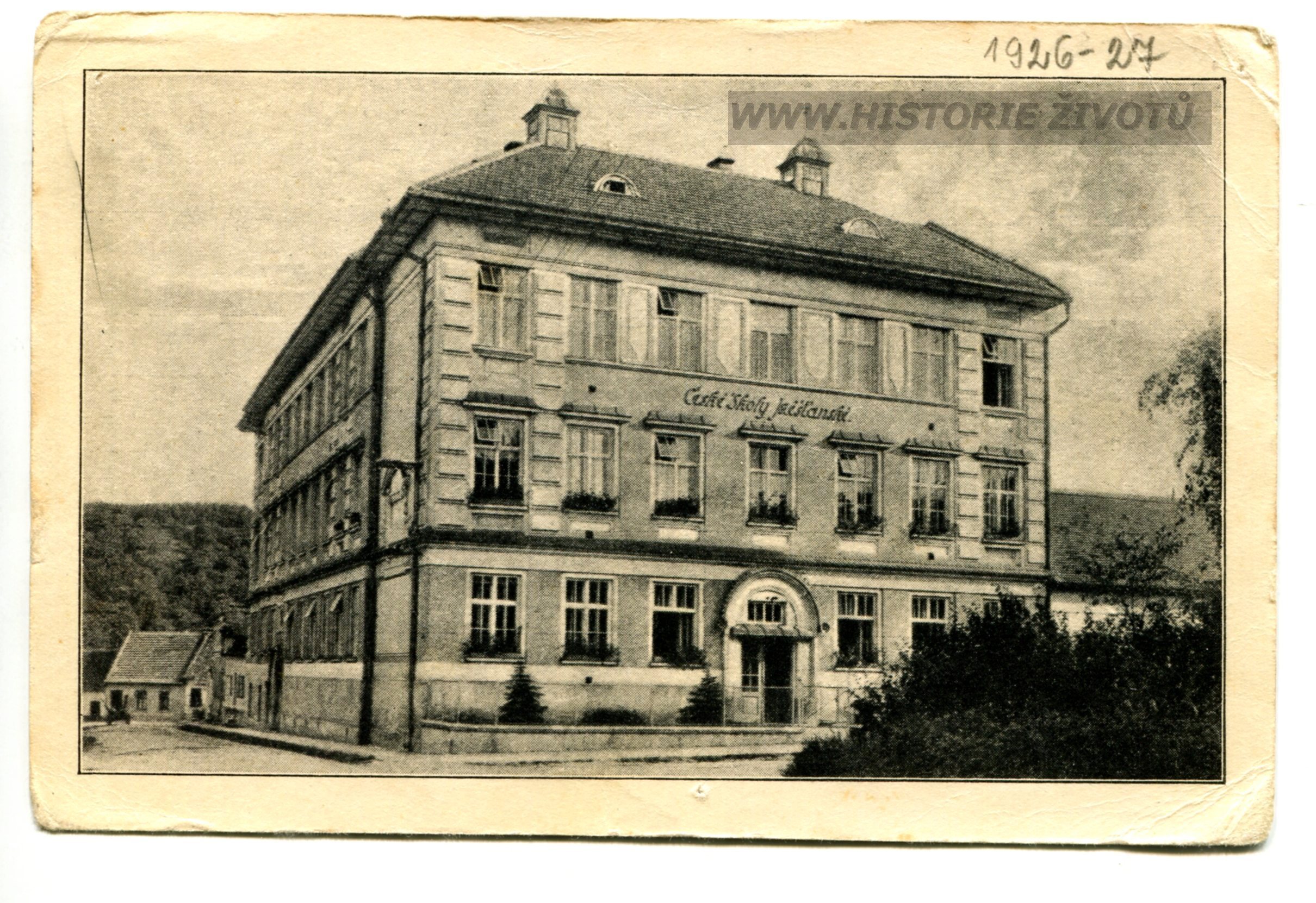 Zdůvodnění: fotografováno do roku 1971, kdy byla z budovy měšťanky odstraněna secesní fasáda