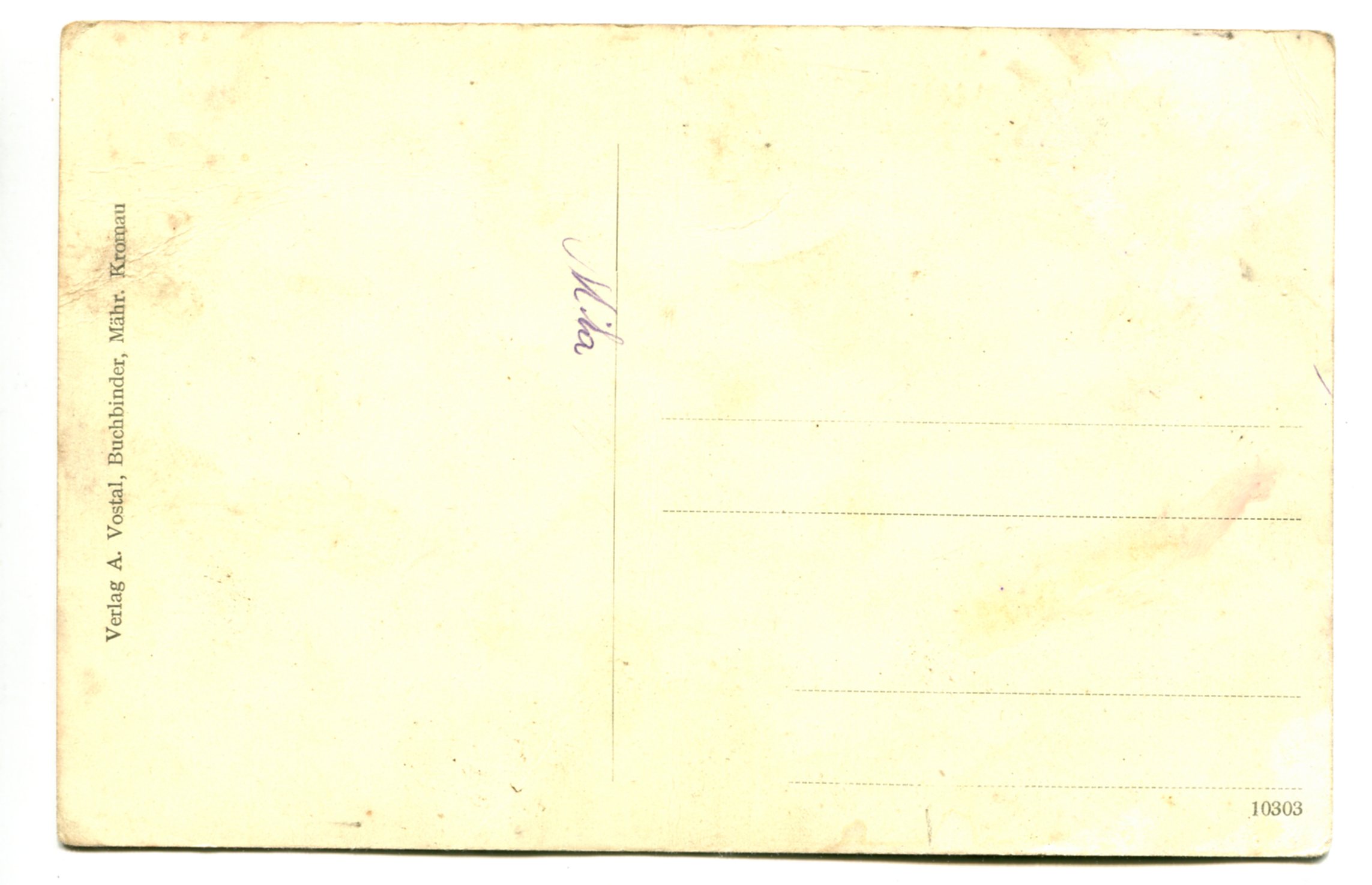 Zadní strana (Obr.č.31): Verlag A.Vostal, Buchbinder, Mähr. Kromau 10303