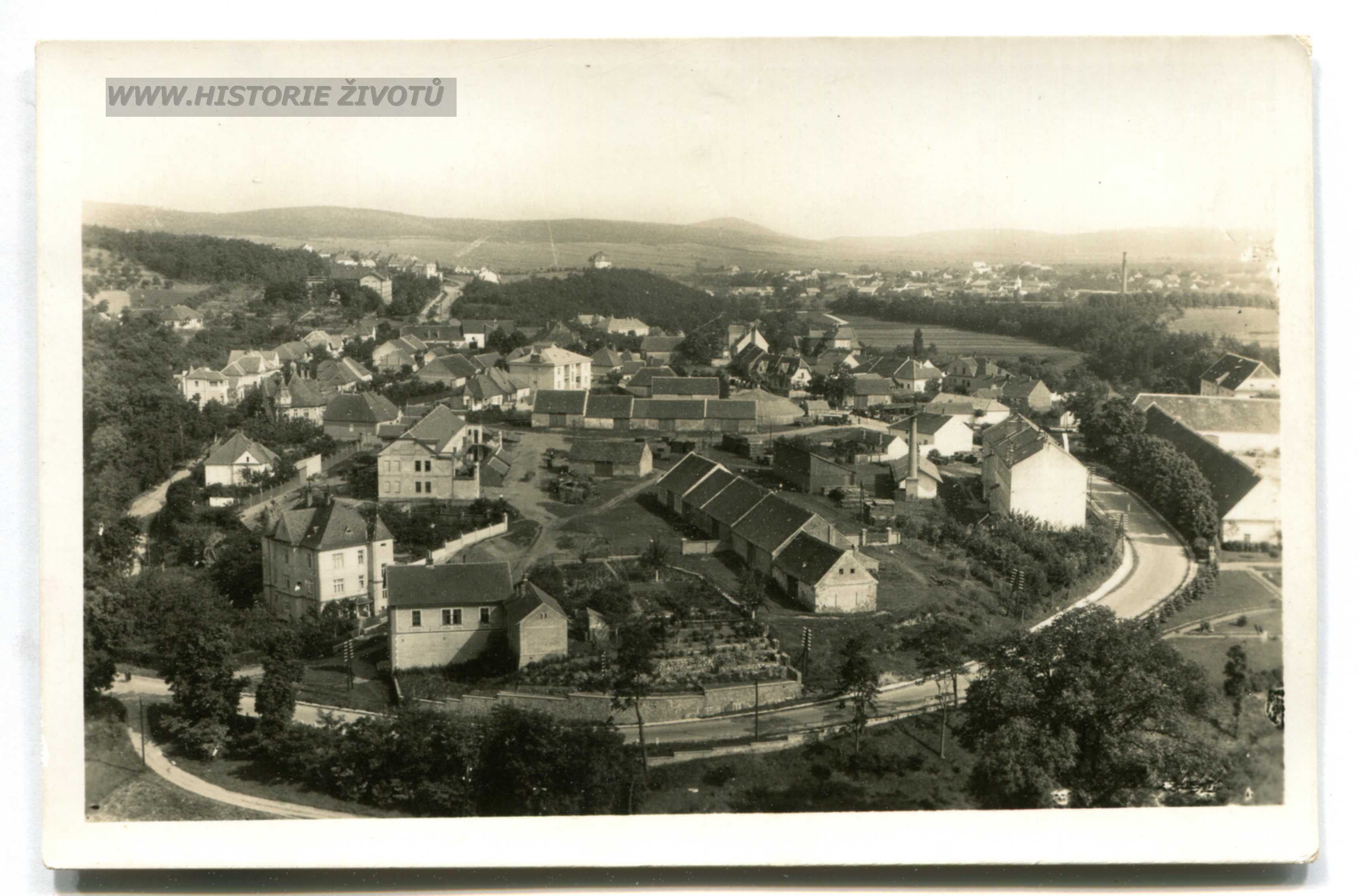 Popis: Před budovou okresního hejtmanství je vidět parčík; nevím, zda tam byl i za války, ale já si ho ještě pamatuji, myslím, že byl zlikvidován začátkem, nanejvýš do půlky 50.let