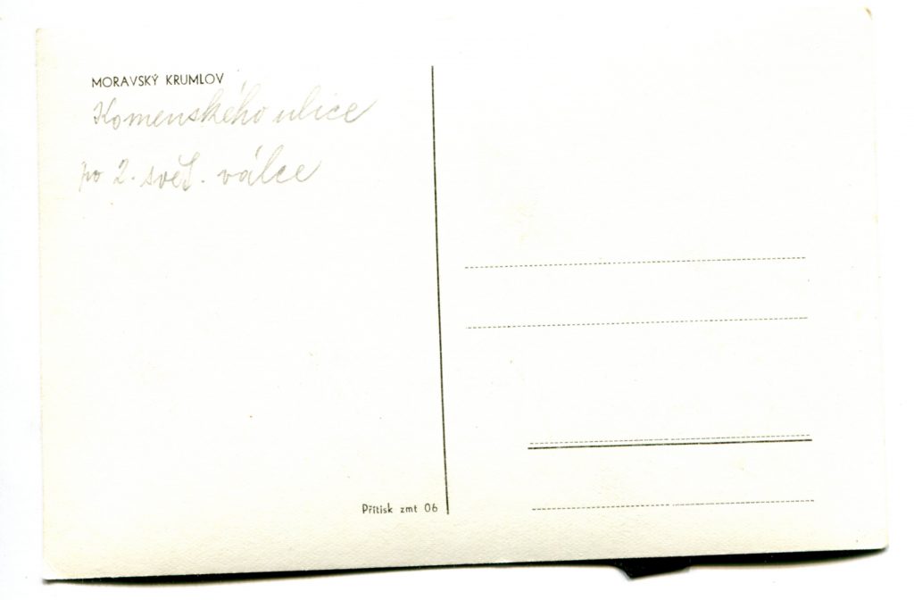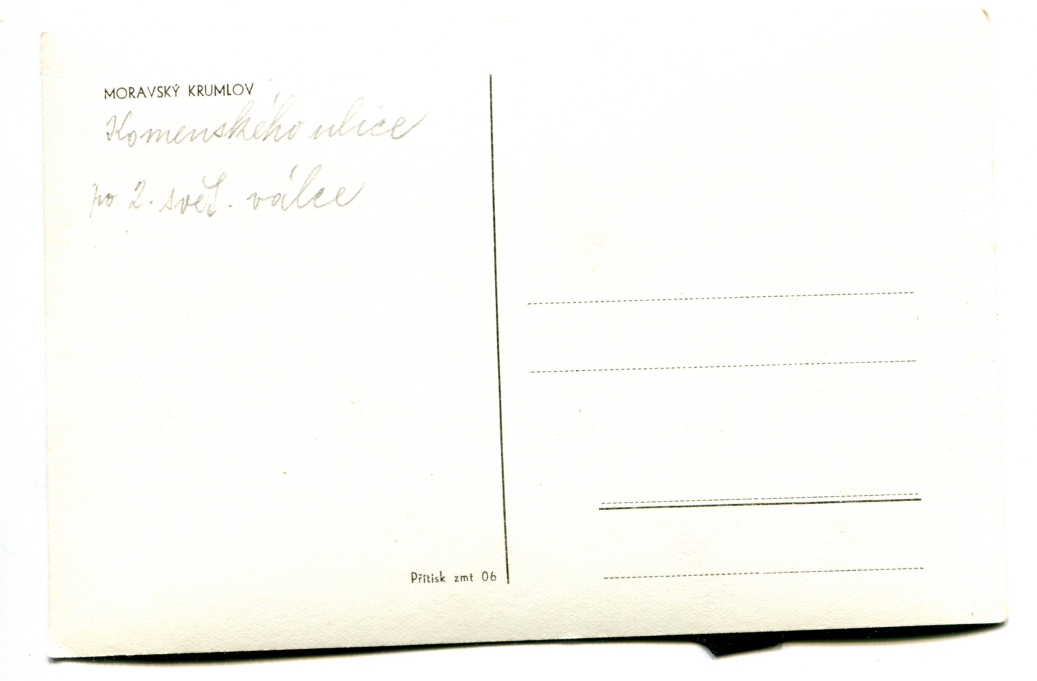 Zadní strana (Obr.č.47): Přítisk zmt 06; ručně dopsáno Komenského ulice po 2.svět.válce