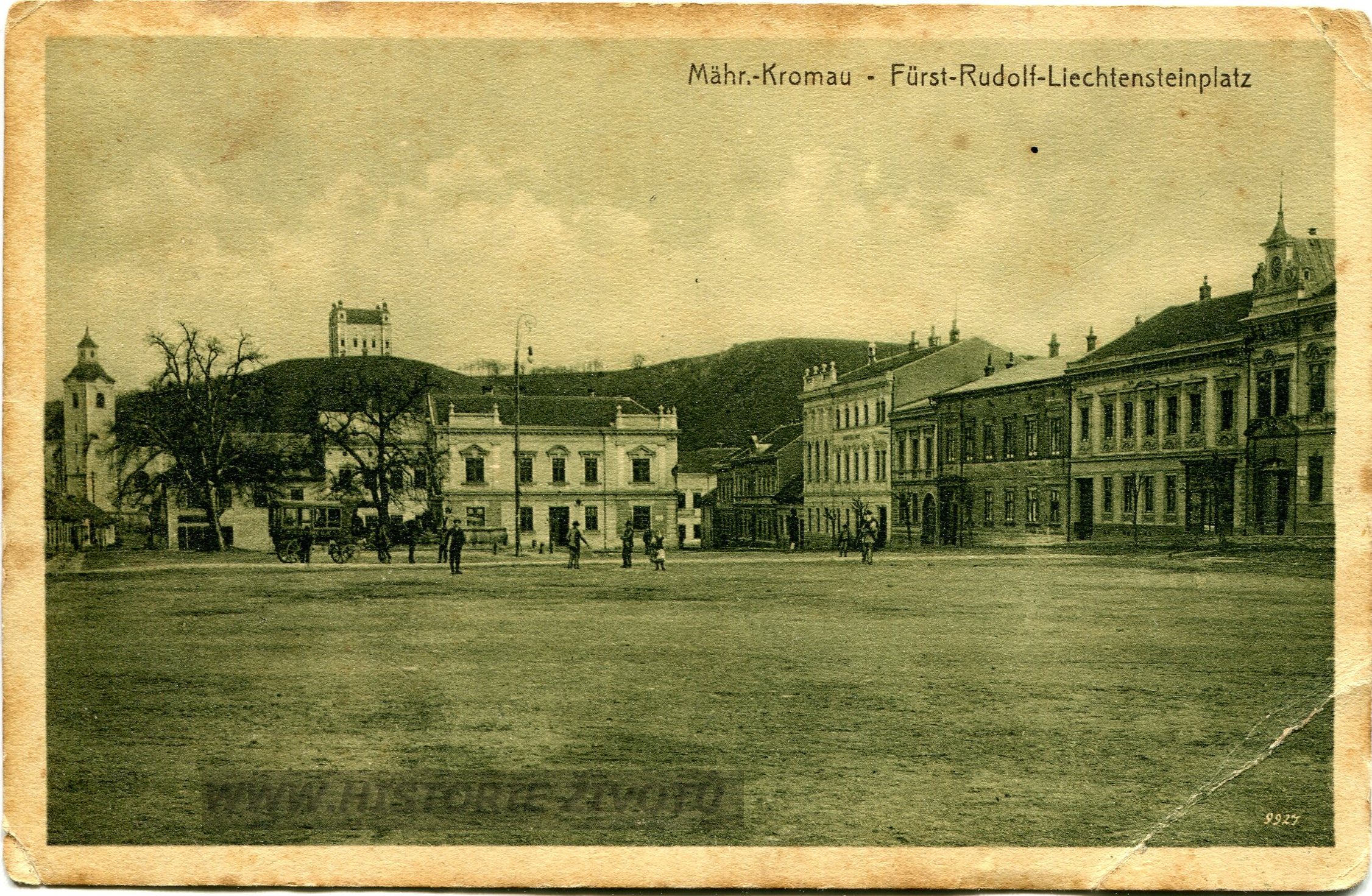 Přední strana: Nápis: „Mähr.-Kromau – Fürst-Rudolf-Liechtensteinplatz“ vpravo dole: 9927