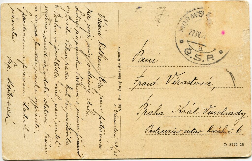 Zdůvodnění: Pohlednice Obr.č.68 je datována 27.4.1926