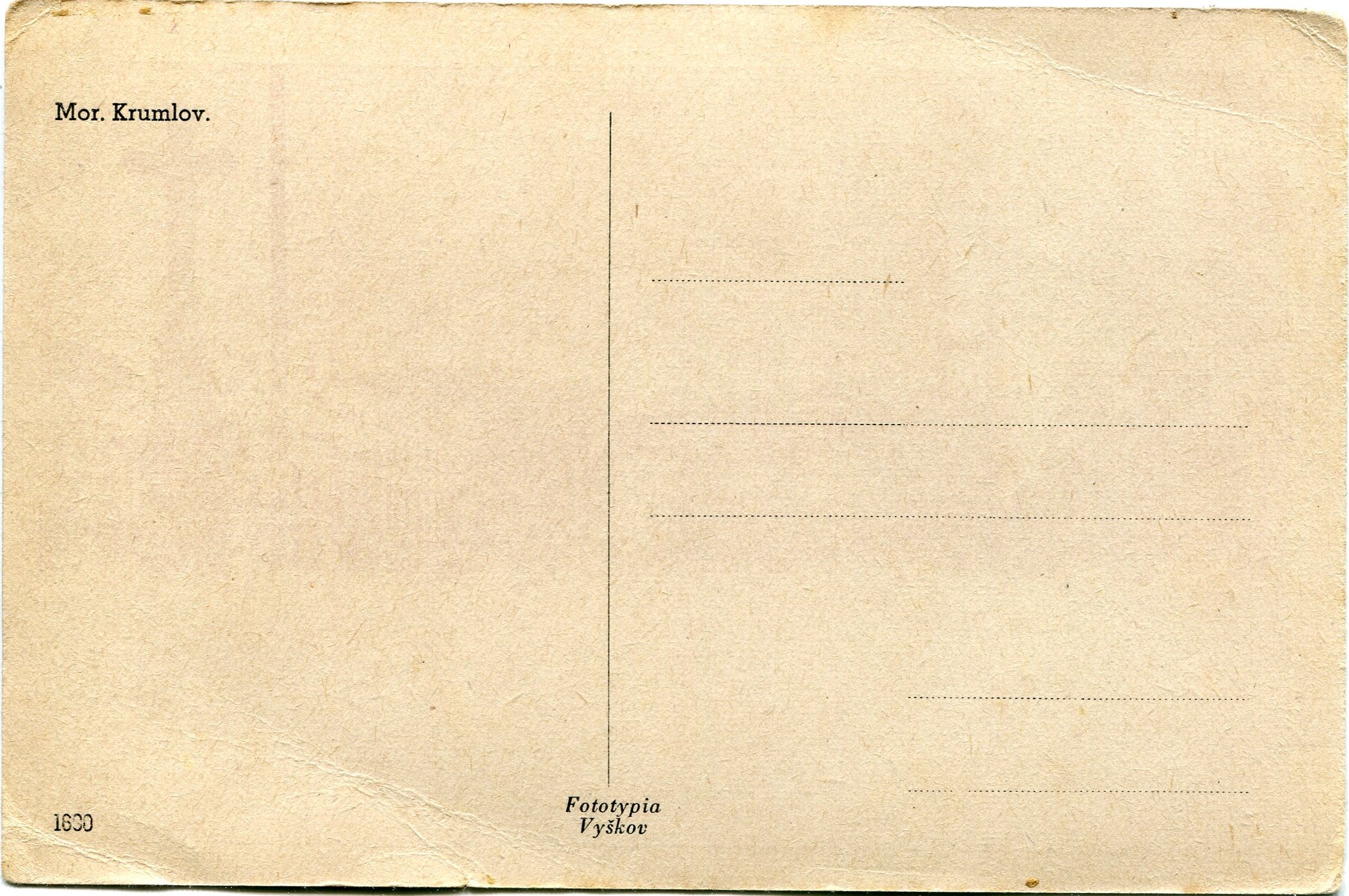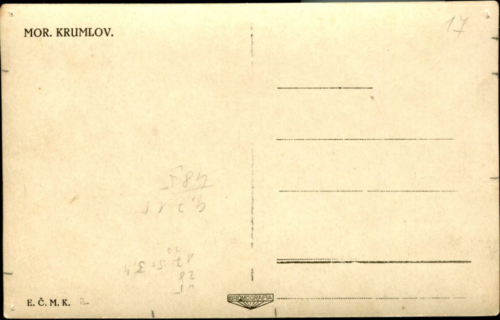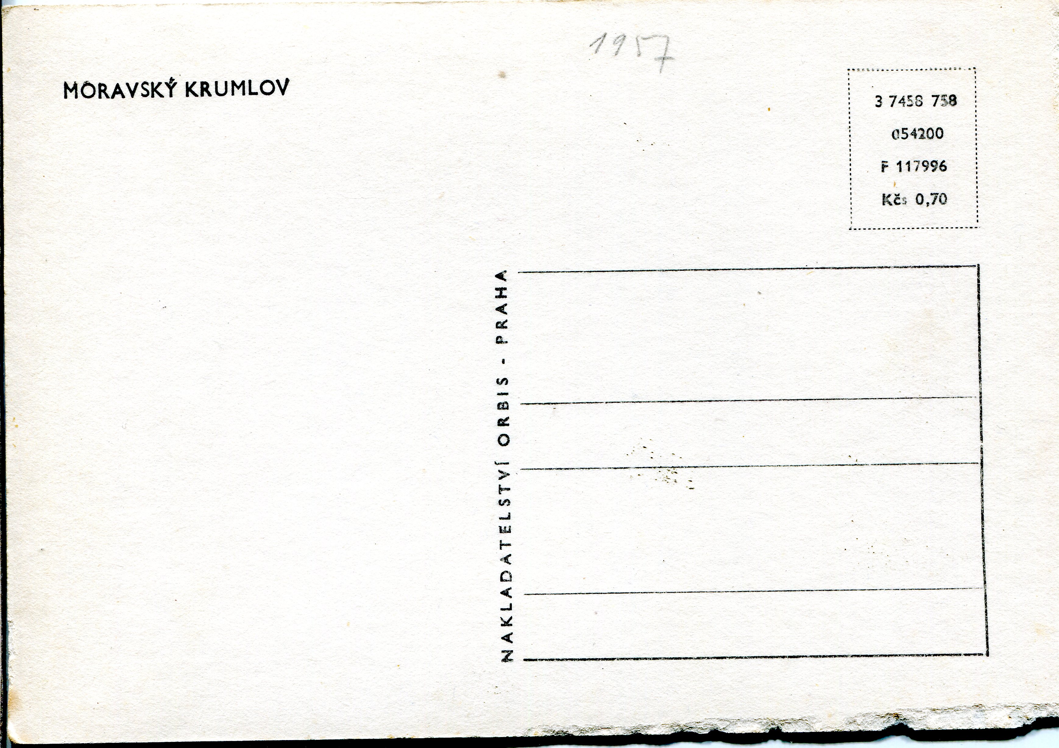 Zadní strana (Obr.č.69): Nákl. Em. Černý Moravský Krumlov         vpravo dole Q 5772 25       vydavatel neuveden