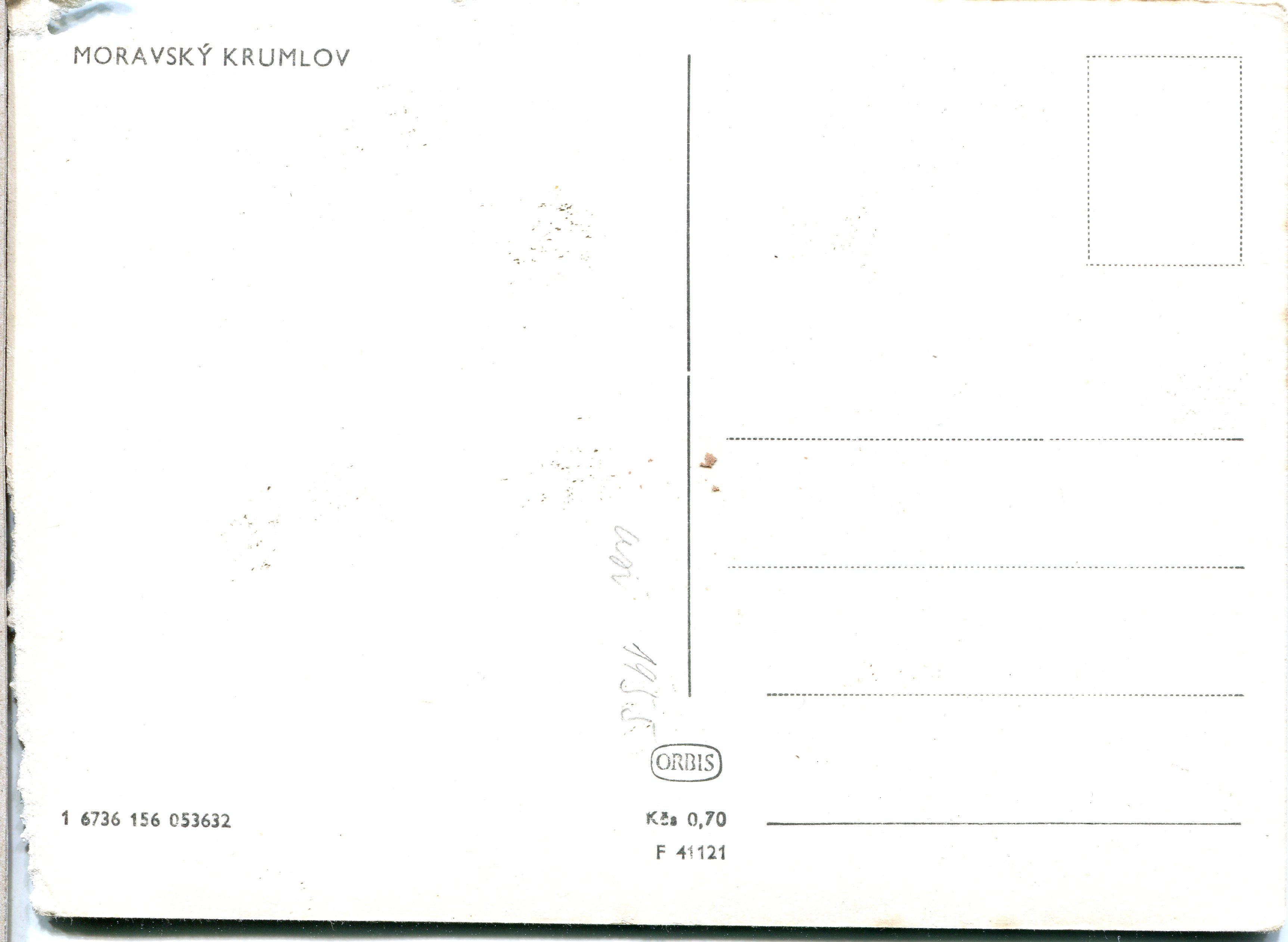Zadní strana (Obr.č.79): ORBIS dole 1 6736 156 053632 Kčs 0,70 F 41211