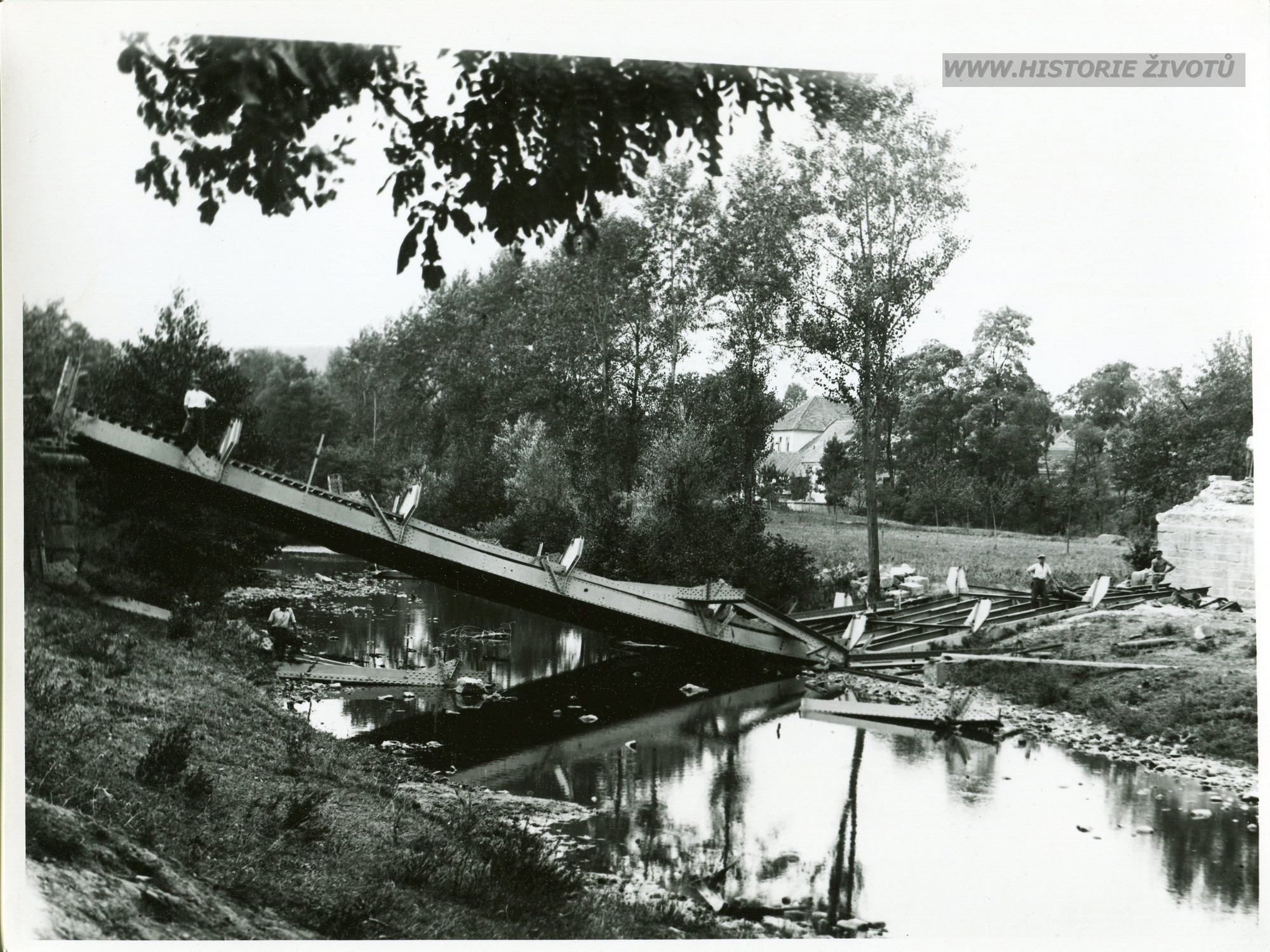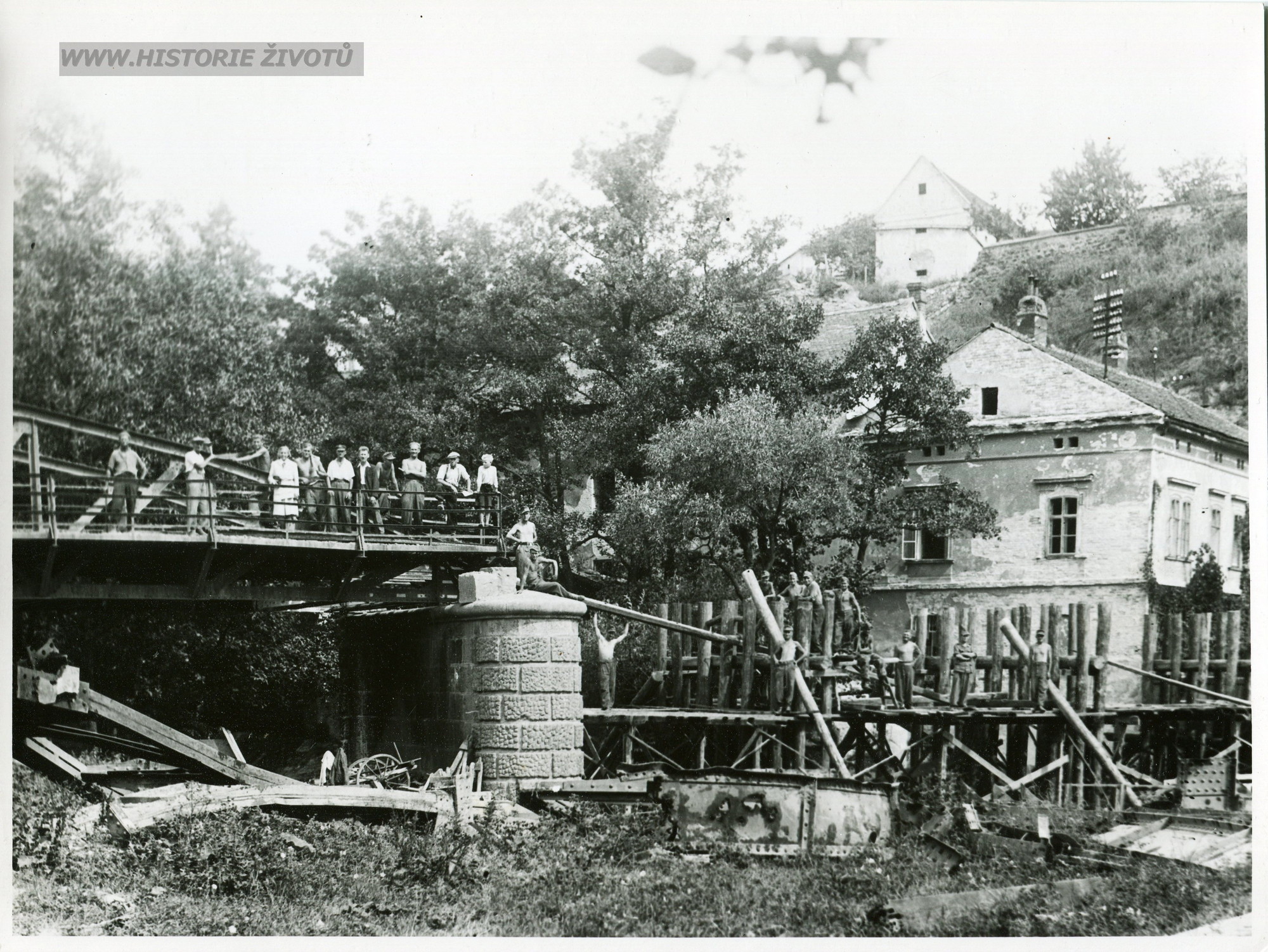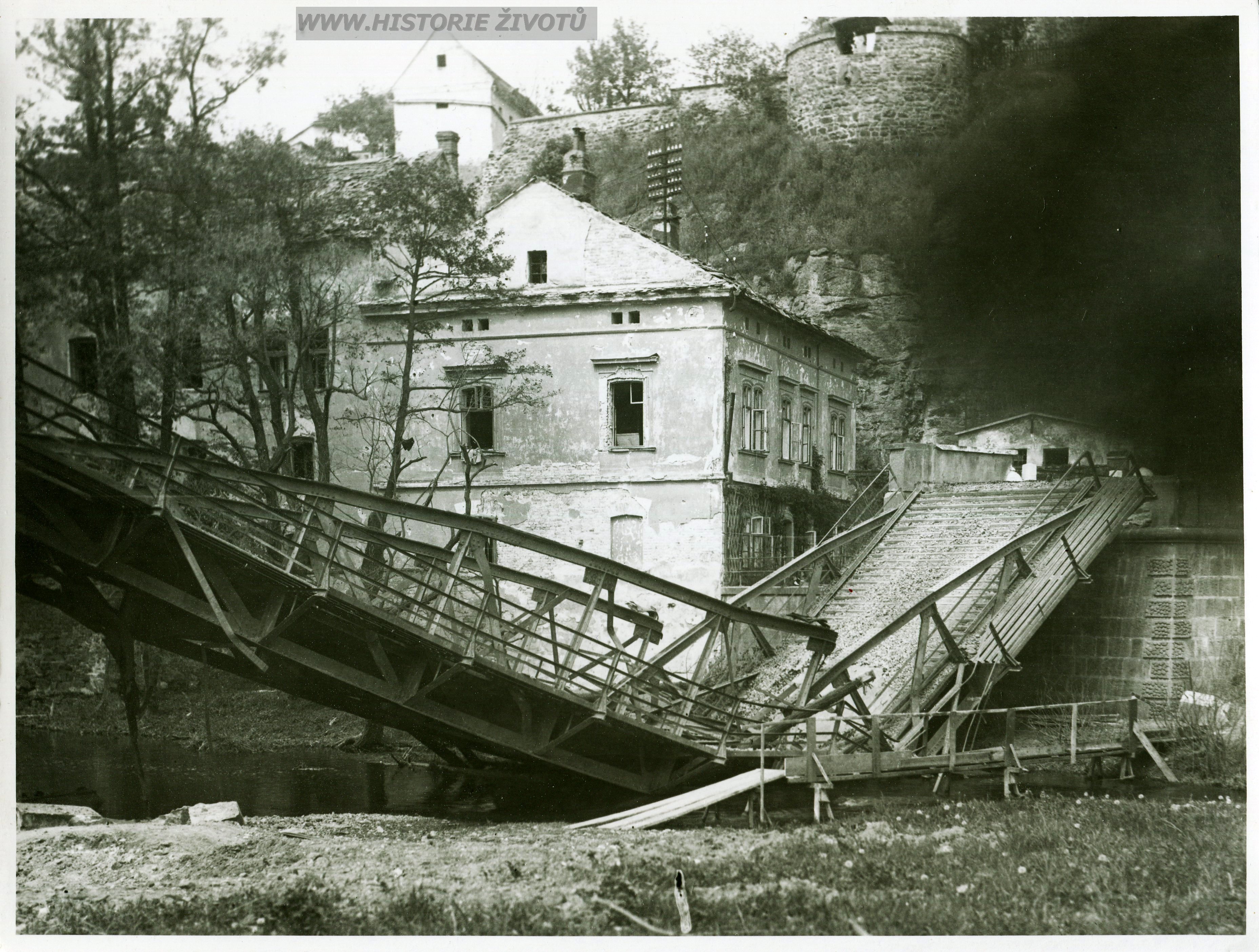 Staré fotografie zbořených mostů v Moravském Krumlově a okolí po 2. světové válce