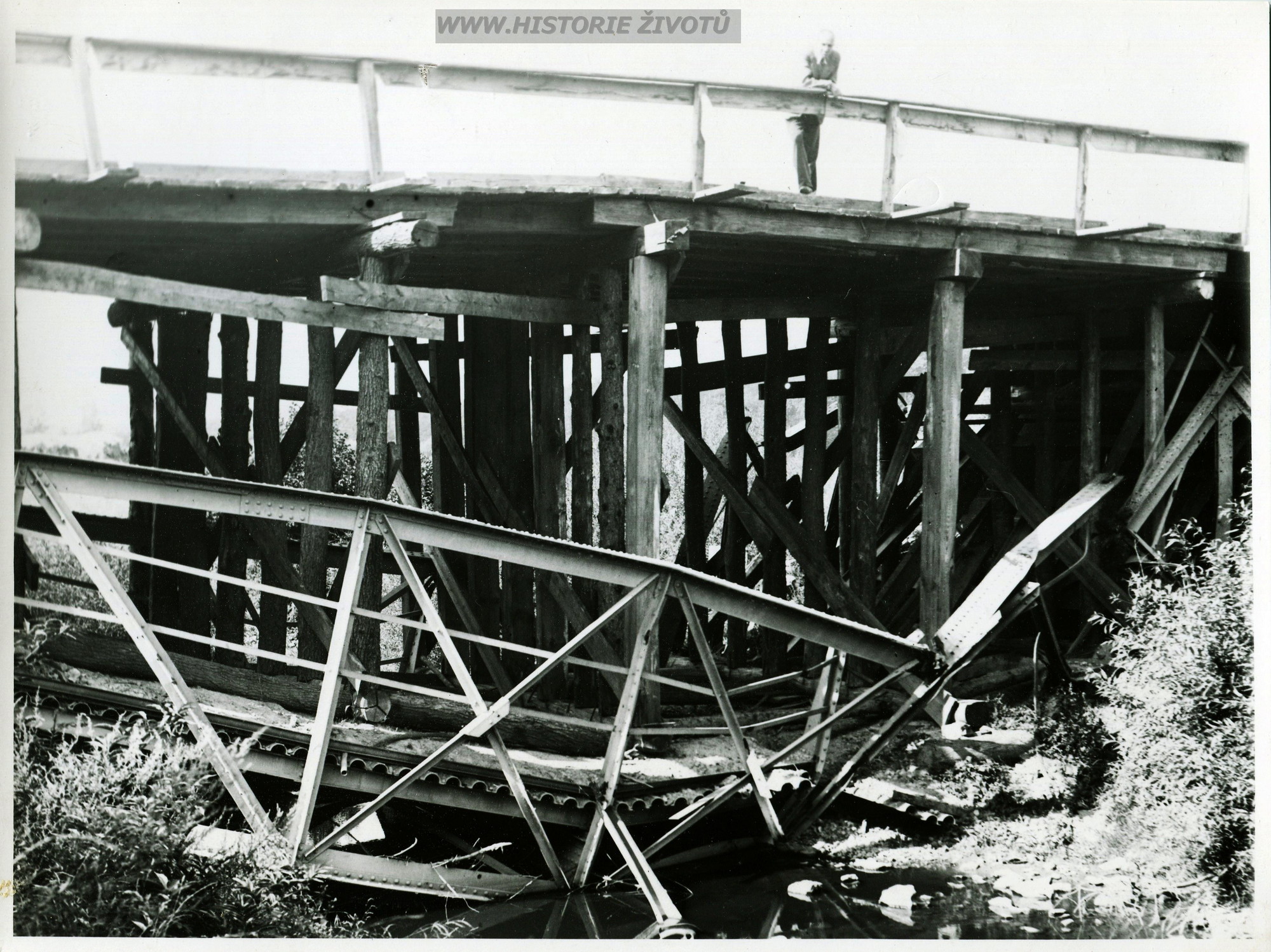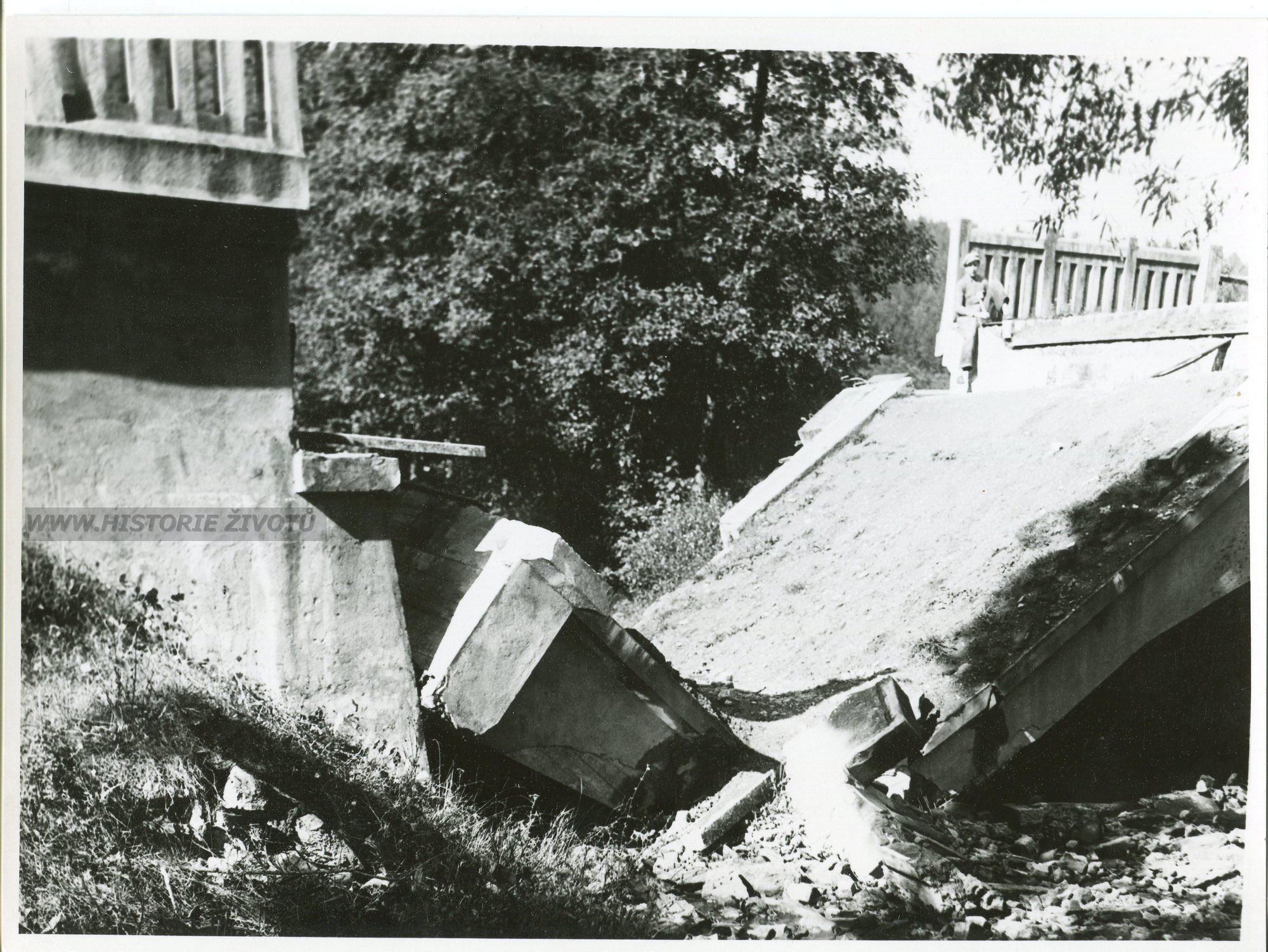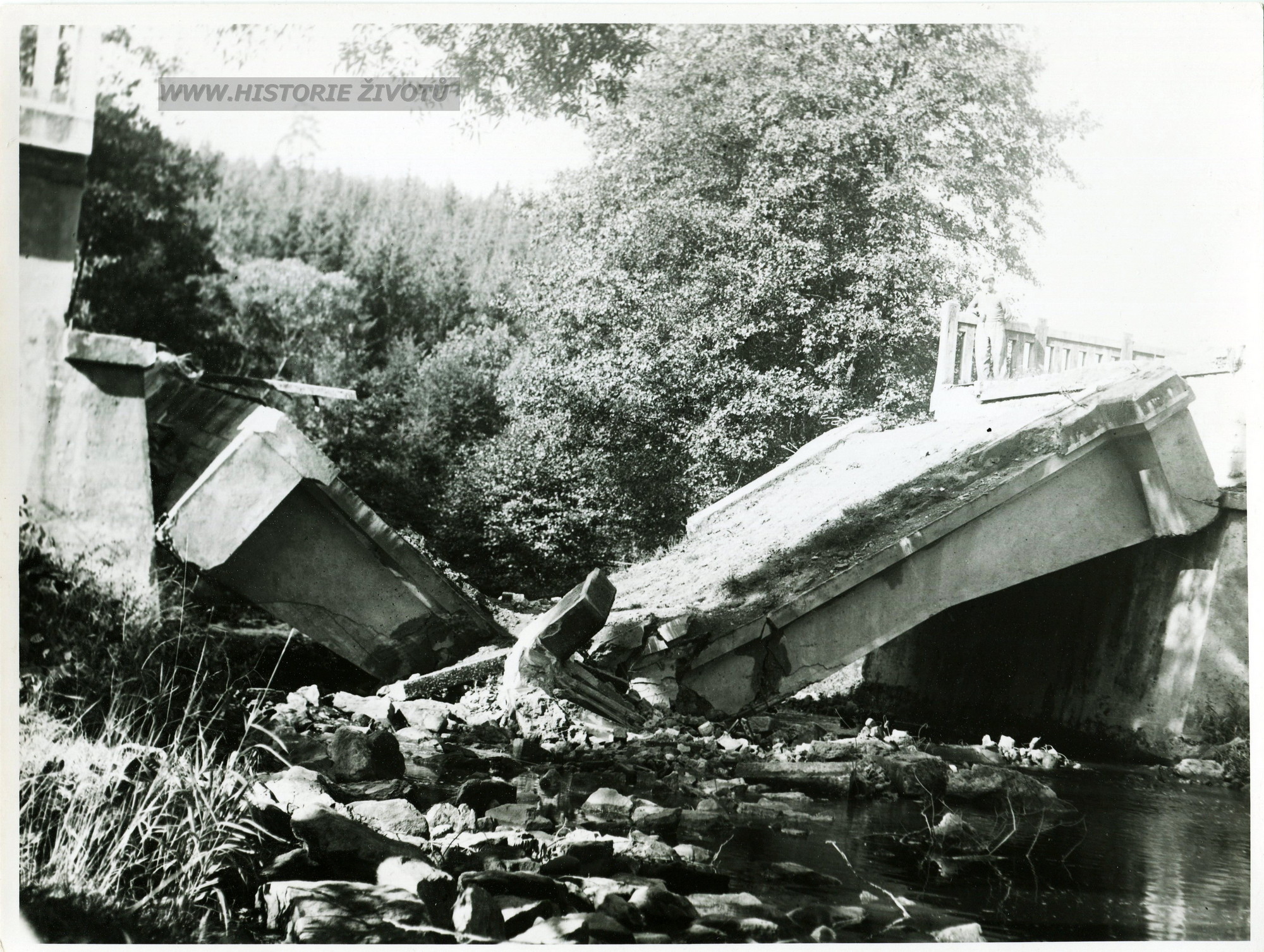 Staré fotografie zbořených mostů v Moravském Krumlově a okolí po 2. světové válce
